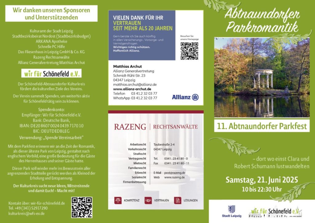Wir freuen uns auf Ihren Besuch beim 11.Abtnaundorfer Parkfest 2025 am 21.Juni am Teich im Abtnaundorfer Park.