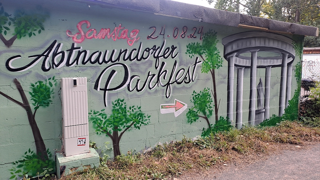 Bislang die größte Werbefläche zu unserem Parkfest findet man in Mockau am Übergang vom Garagenhof in den Abtnaundorfer Park.