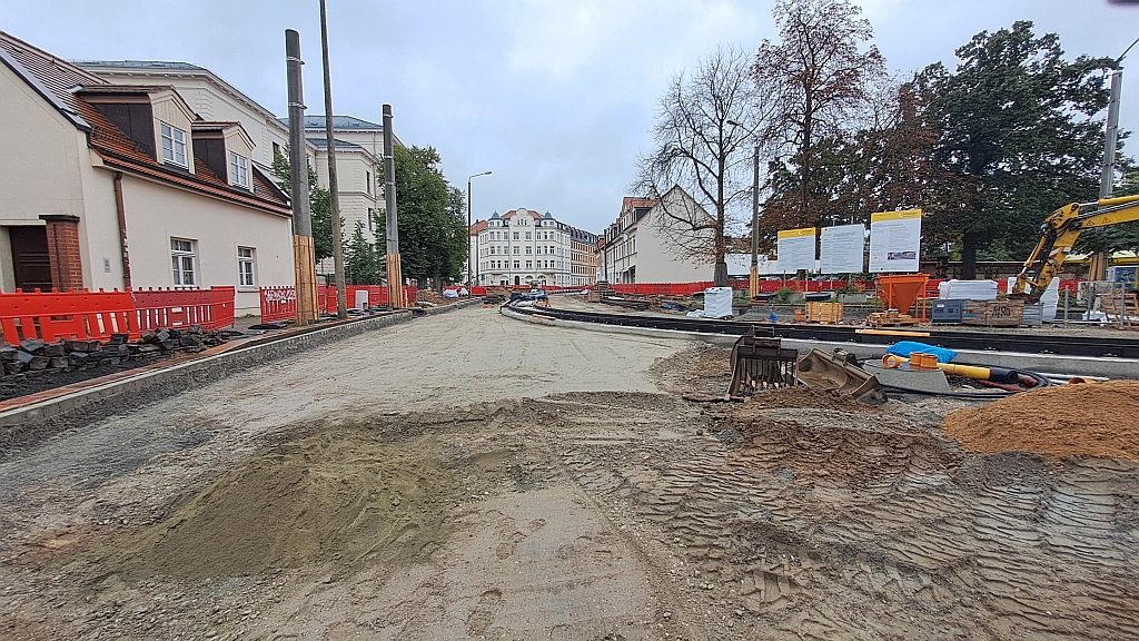 Nicht nur vorm REWE in der Gorkistraße sieht man langsam, ganz langsam ein Ende der Baumaßnahme. Auch an der Kreuzung Ossietzkystraße / Gorkistraße ist man mit den Tiefbauarbeiten fertig und baut die Straße langsam wieder auf.