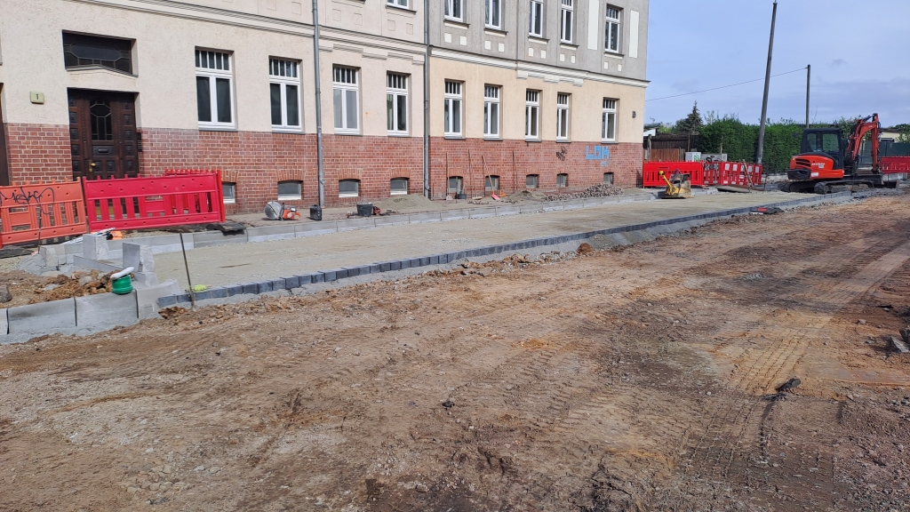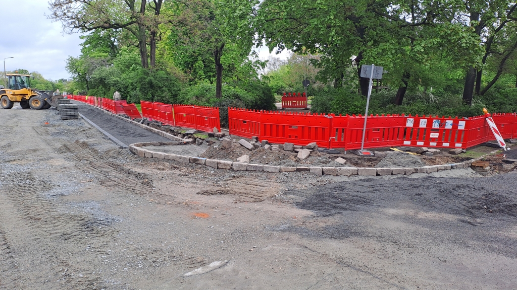 Der südliche Abschnitt (bis zur Einfahrt Sportschule) wird derzeit total umgekrempelt. Im vorderen Bereich entstehen sogar 20 richtige Parkplätze. Auch die Gehwege werden überarbeitet und die Ecken an der Kreuzung endlich abgesenkt. Ob die Zeit bis zur Fußball-EM allerdings reicht um fertig zu werden, werden wir sehen.