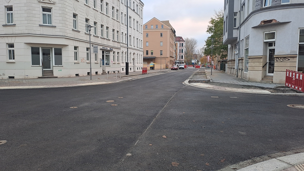 Noch bis Anfang Februar 2024 wird uns die Baustelle in der Löbauer Straße und der Volksgartenstraße begleiten. Der Bereich der südlichen Löbauer Straße wird nun fertiggestellt.