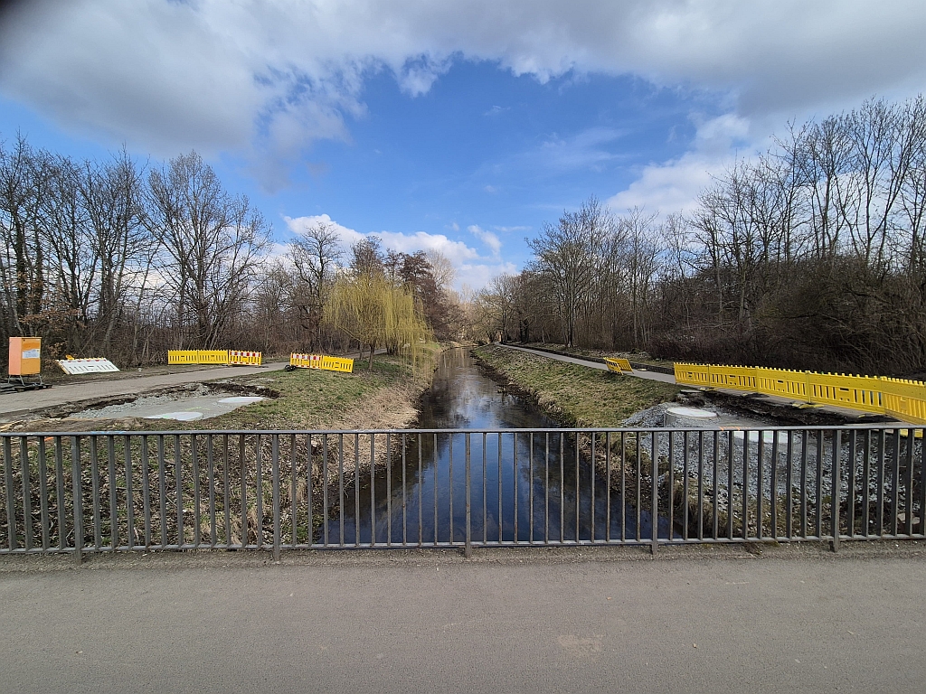 Auch die Parthebrücke wird mit saniert. Sie entstand an dieser Stelle um 1935/40 als man die Kreuzung Richtung Schloß neu struktierte. Während der Sanierung nun wird es eine Behelfsbrücke geben.