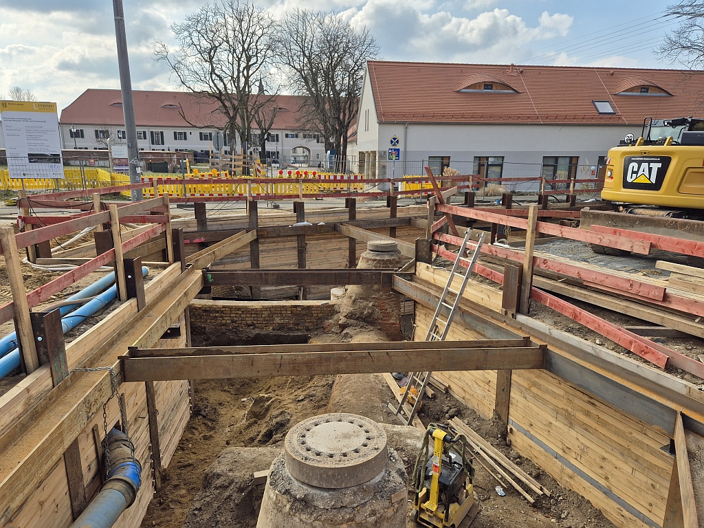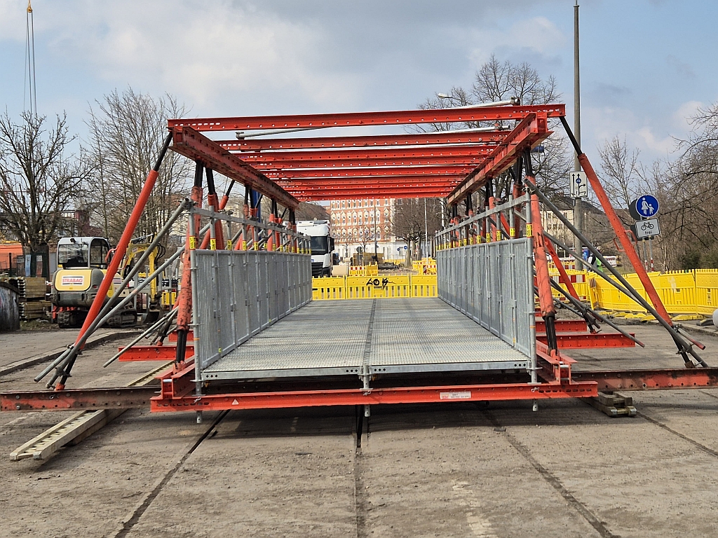 Auch hier werden nicht nur neue Gleise verlegt. Eigentliches Hauptziel sind dabei ein Regenwassersammler unter der Wendeschleife / Endstelle der LVB und eine sanierte Parthebrücke.