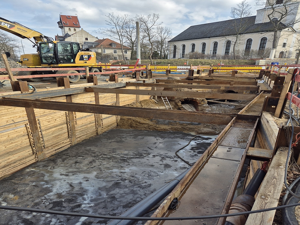 An oder besser unter der Wendeschleife trifft gerade die Moderne Entwässerungstechnik auf die alte Entwässerungstechnik. Bereits vor 100 Jahren wurde dort ein riesiger Wassersammler gebaut – vermutlich in Zusammenhang mit der Wollkämmerei.