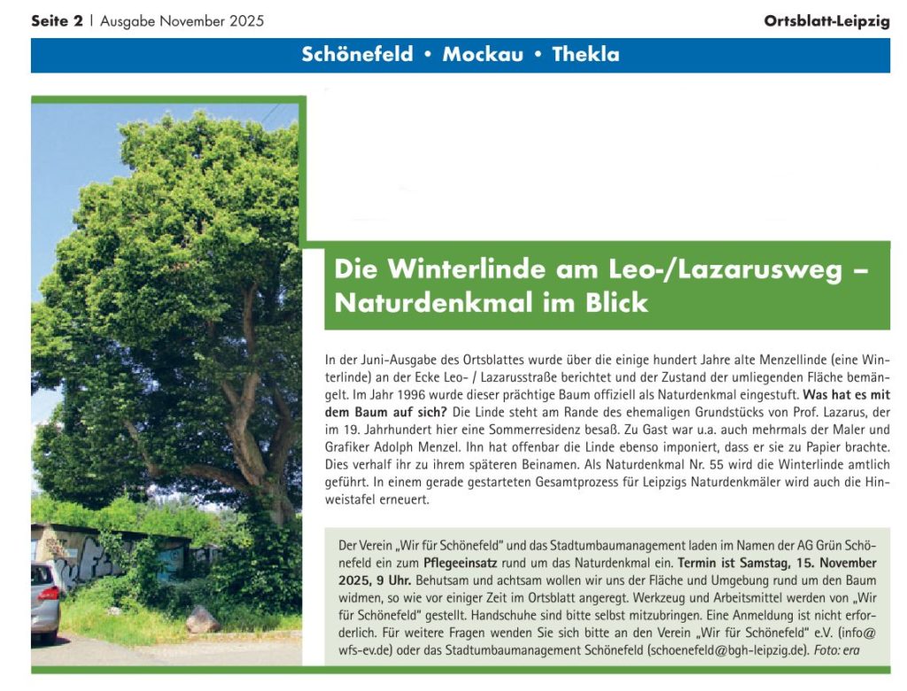 Hierzu folgender Aufruf aus dem aktuellen Ortsblatt Schönefeld, Ausgabe November 2025: