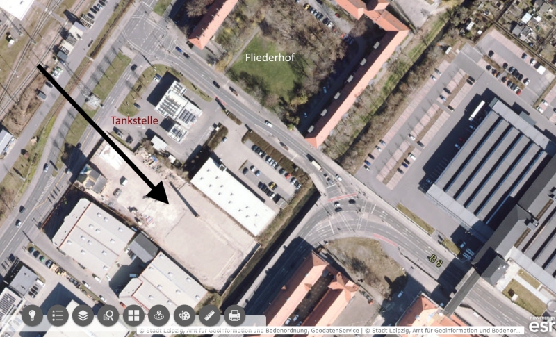 Dafür wird – laut LVZ-Online – ein paar Hausnummern genau neben der Tankstelle weiter, ein „Ersatzneubau Kulturhaus an der Parthe, bestehend aus Kultur‐ und Vereinshaus, Büro und Verkauf“ der islamischen Gemeinde aus der Roscherstraße derzeit errichtet. Die LVZ spricht dabei von einer Moschee. Geplanter Umzug ist Winter 2024, da man aus dem Gebäude in der Roscherstraße raus muss. Siehe Pfeil.