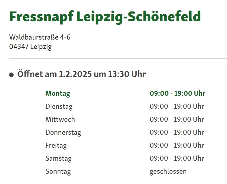 Etwas eher kommt wieder Leben in die Waldbaurpassage. Fressnapf hat nun folgende Informationen auf ihrer Webseite bereit gestellt.