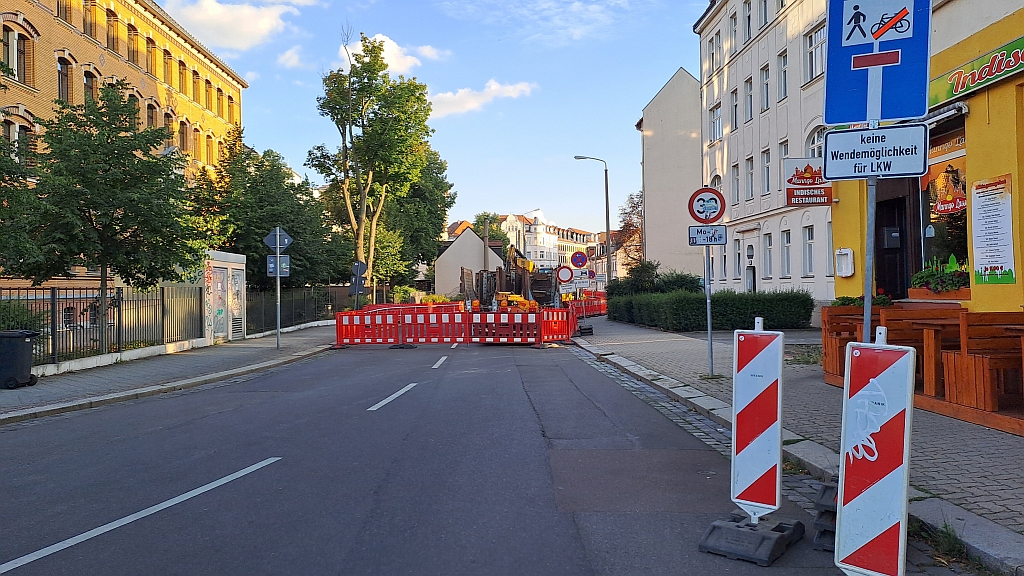 Als „Ausgleich“ kann man zumindest die Gorkistraße / Löbauer Straße am REWE wieder langfahren. Auch wenn es noch eher eine Baustraße ist.
